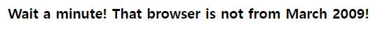 그랬더니 다른 문구가 출력되었다. 브라우저가 2009년 3월의 것이 아니라고 하는데 여기서부터 이 문제가 의도하는게 뭔지 감을 잡았다. 2009년 3월에 출시된 브라우저를 찾아보니까 Internet Explorer 8이 있었고 해당 브라우저의 User-Agent는