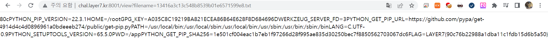 플래그 앞에가 LAYER7{이라는 점을 이용해서 위 코드처럼 인덱스를 하나하나 찍어봤고