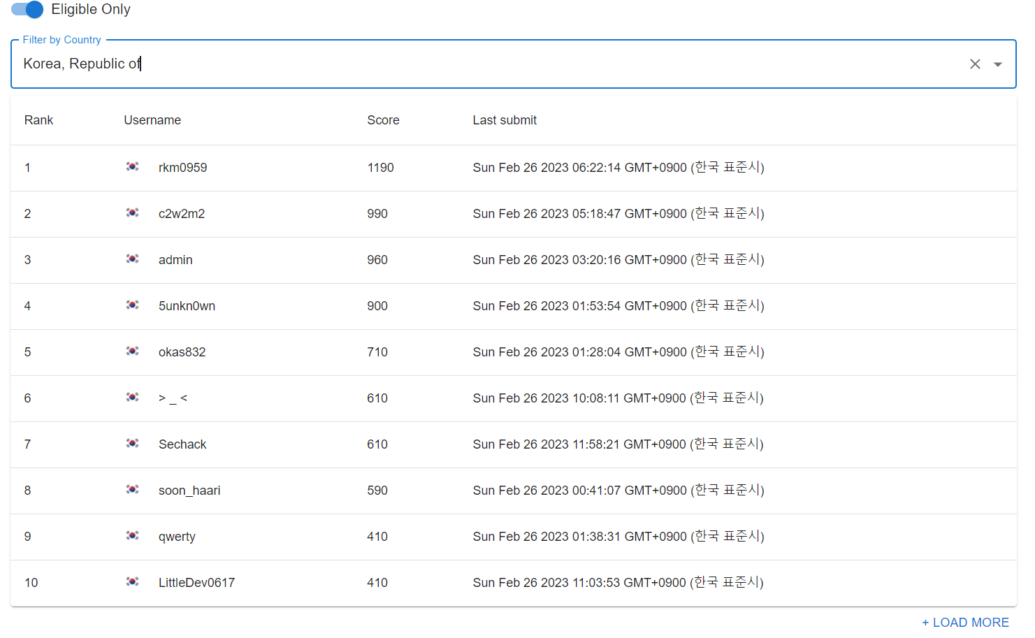 글로벌 순위는 50등이다. 한국 top3안에 들어야 아시아 대표로 선발될 가능성이 생기는데 언젠가 한번 해보고싶다.