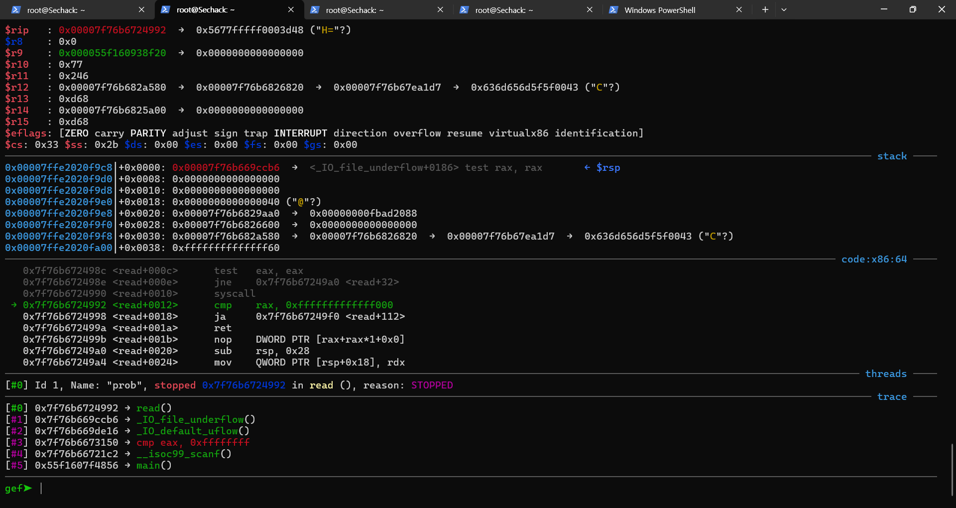 아무튼 단순히 주어진 Dockerfile build해서 빼온 libc가지고 offset만 맞춰서 해결할 수 있는 로되리안이 아니라 진짜 서버랑 실행 환경을 개똑같이 하고 테스트를 해야하는 상황이었다. Docker안에 gdb설치하자니 libc가 바뀌고 LD_PRELOAD를 쓰자니 이것도 억지로 libc끼우는거라 환경이 달라진다. 즉 문제에서 제공한 Dockerfile을 그대로 빌드해서 nc로 붙었을때 실행되는 바이너리를 디버깅해야만 한다는 말인데.. 이게 상식적으로 가능한가..?