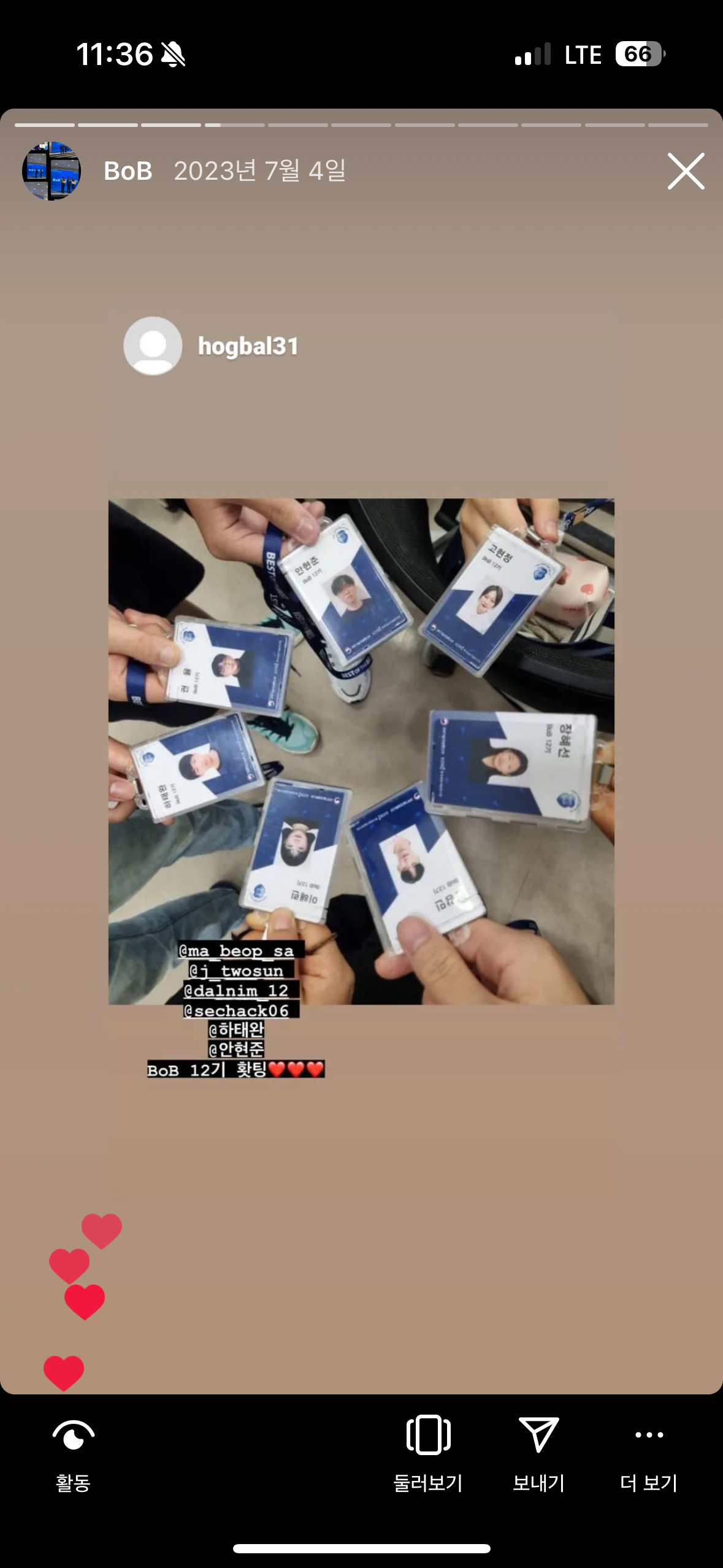 BoB는 건강과 실력을 맞바꾸는 프로그램이다. 물론 난 매우매우 건강하고 강력한 신체를 보유중이기에 잠 못자서 클 키 못큰건 있을지 몰라도 신체건강에 타격은 없었고 정신건강에만 타격이 있었다. 나같은 건강한 신체를 보유한 사람들만 비오비 하길 바란다. 물론 Best10같은거 욕심 없이 적당히 자기 하고싶은것만 하면 편하긴 하다.