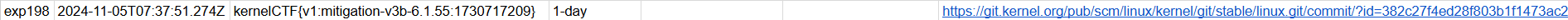 어쩌다 보니 1-day가지고 google kernelCTF에서 mitigation instance exploit에 성공했다. 물론 온전히 혼자 한건 아니고 회사 사람들의 도움을 많이 받았지만 그래도 고인물의 영역인줄 알았던 kernelCTF를 내가 직접 따보니까 기분이 너무 좋았다. 위 사진은 kernelCTF 스프레드시트 사진이다.