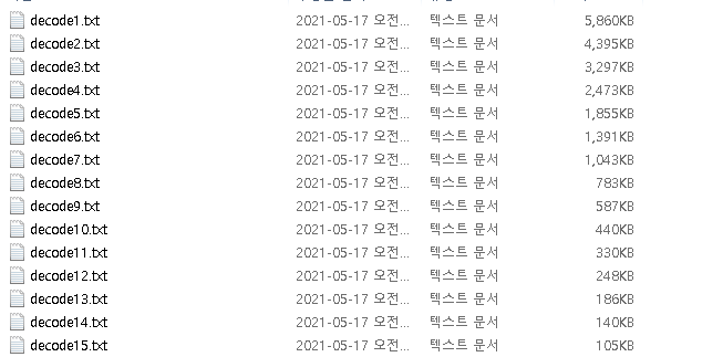 이 사이트에서 base64형식의 txt파일 업로드를 지원한다. 업로드하고 디코딩이 성공적으로 되었단다. 설마? 하는 마음에 다운받아보니까 7000kb규모였던 txt파일 크기가 5000kb규모로 줄어들어있었다. 게싱성공!! ㅋㅋ 그래서 바로 python으로 짜려는데... 파일 잘 읽히나 확인하려고 파일 읽어서 출력해봤는데 너무 데이터가 많아서 그런지 출력되는 도중에 컴이 멈춰서 강종하고 재부팅했다. 그이후로는 python으로 안건들고 그냥 위에 있는 디코딩 사이트에서 계속해서 돌렸다. 점점 줄어드는 파일크기를 보면서 조금씩 정답에 가까워지고 있다고 생각하고 점점 기대되었다.