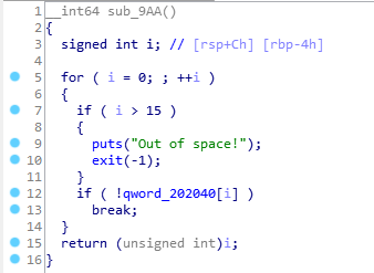 앞부분에서 호출되는 함수를 보면 chunk를 총 16개까지 할당할 수 있음을 알 수 있다.