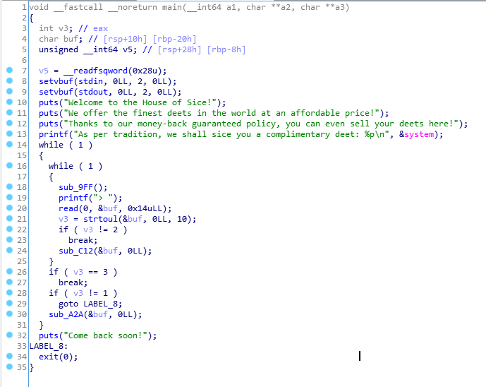 main함수는 이렇다. 일단 가장 눈에 띄는게 system의 주소를 그냥 출력해준다. 그리고 문제에서 libc파일도 같이 주기때문에 libc leak을 할 필요가 없고 libc database를 사용할 필요도 없다. libc파일의 버전은 2.31이었다. (ubuntu 20.04)