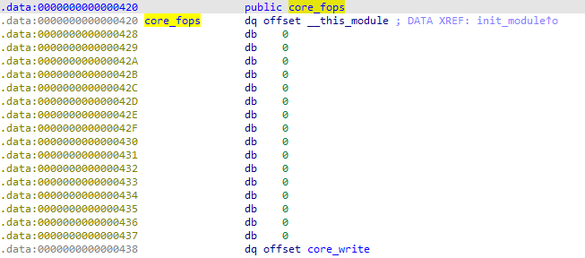 모듈이 로드되고 가장 처음에 실행되는 함수이다. proc_create함수가 있는데 core라는 이름의 드라이버를 /proc디렉터리에 생성하는 역할을 한다. 그리고 마지막 인자로 전달되는 core_fops를 보면