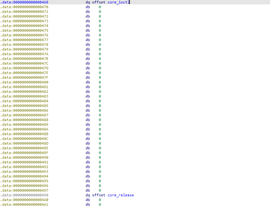 이렇게 압축이 해제된것을 볼 수 있다. 그리고 우리가 원하던 커널 모듈 파일인 core.ko파일도 추출된것을 볼 수 있다. 이제 저걸 IDA와 같은 디버깅 툴로 분석하면서 취약점을 찾으면 된다. 이 문제같은 경우에는 압축을 풀자마자 ko파일이 바로 보였지만 /lib디렉터리 안에 있는 경우도 많다. 그리고 드림핵에 kpwnote문제같은 경우에는 커널 모듈 파일이 아무리 찾아도 안보여서 그냥 제공해주는 소스코드만 보고 진행하긴 했다. 아무튼 core.ko파일을 분석해보자.