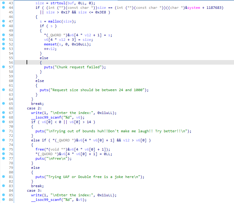 puts("What are you even trying uaf or double free!!Nothing works here");