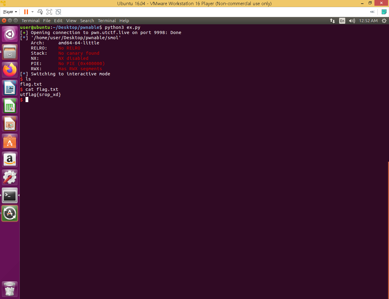 익스플로잇 코드이다. 마지막에 "\x90"을 0x10만큼 넣어준건 rsi랑 rsp랑 0x10만큼 차이나서 맞춰준것이다.
