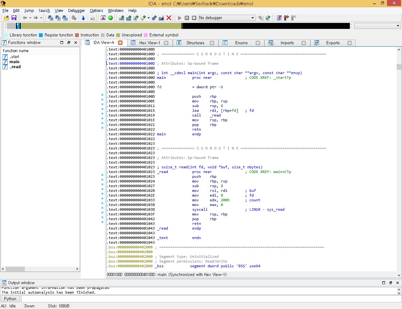 main함수와 _read함수, 그리고 _start함수 3개만 덩그러니 있었다.