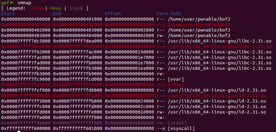 스택 영역에 rw권한이 있는것을 볼 수 있습니다. 실행 권한을 뜻하는 x가 사라졌네요.