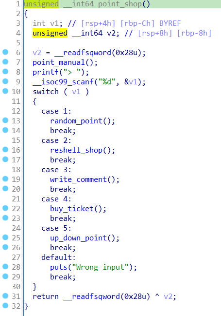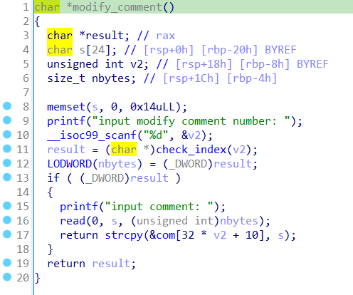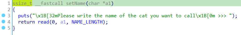 이 함수에서는 먼저 정수를 입력받습니다. 입력받은 정수는 v5변수로 들어갑니다. 그리고 v7[v5 - 1]을 setName함수로 넘겨줍니다.