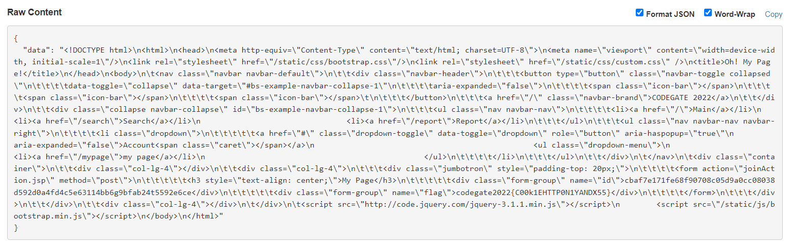 webhook으로 mypage의 html코드가 왔고 여기 안에 플래그가 있습니다.
