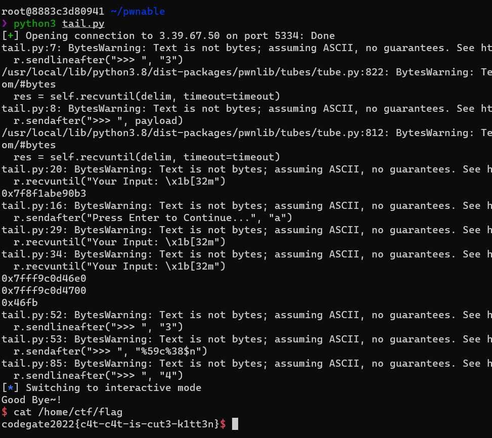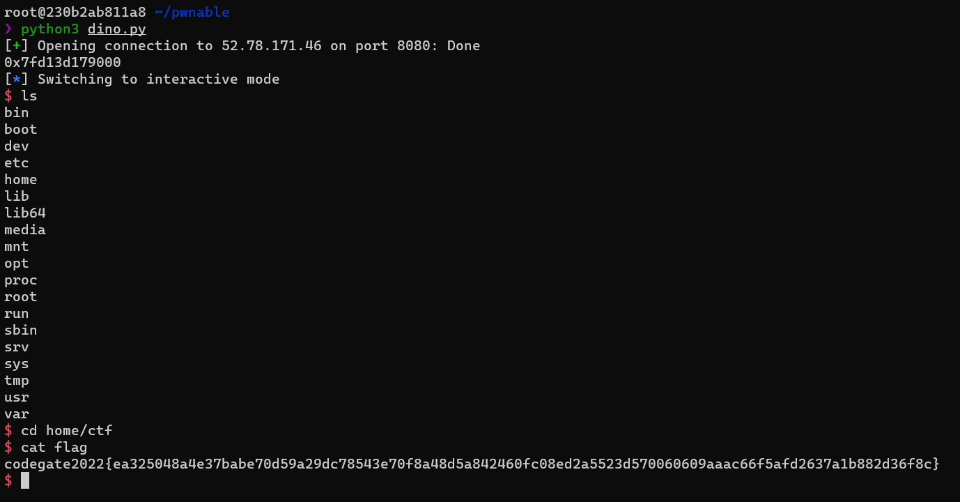 exploit을 실행하면 약간의 기다림 끝에 플래그를 얻을 수 있습니다.