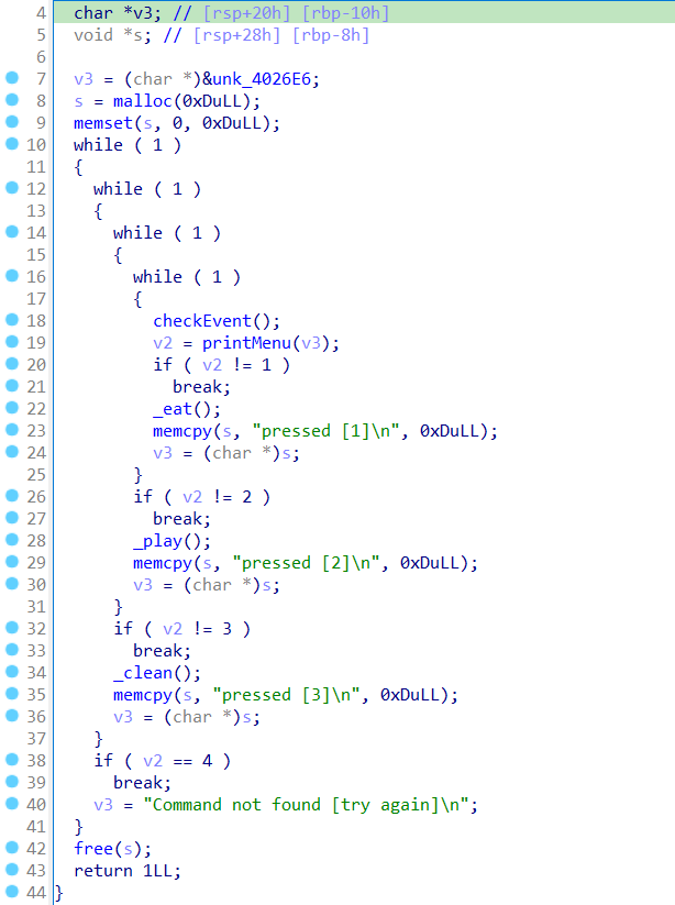 3가지 기능은 단순히 satiety, clean, happy전역변수에 특정 연산을 수행하는것 뿐입니다.