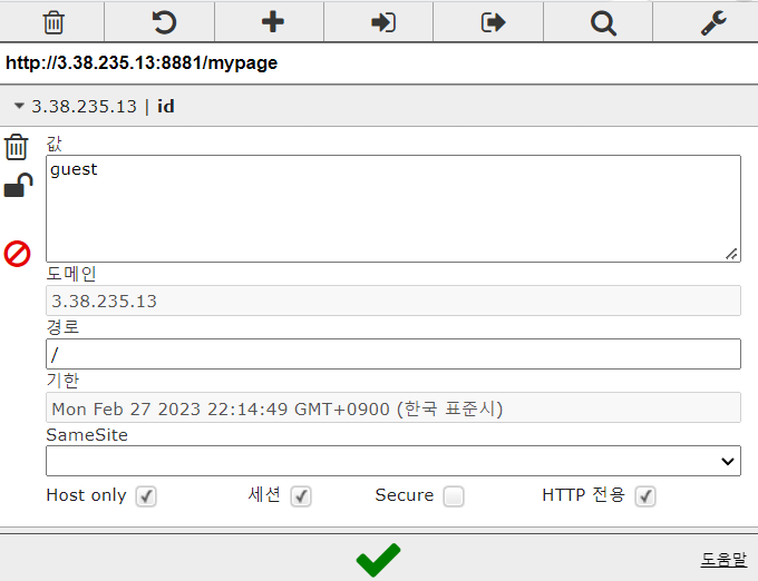 id가 guest입니다. 그러면 이 쿠키값을 admin으로 변경하면