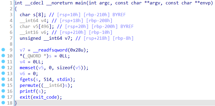 프로그램 구조는 간단하다. 그냥 fsb터진다. exit_code를 원하는 값으로 덮으면 된다. 문제는 permute함수인데 안에 들어가보면