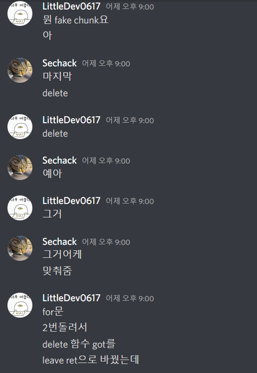 와... 참신하다...캬... delete랑 그 아래 함수에만 너무 치중해서 생각을 해서 윗부분은 대충 분석하고 넘어간게 화근이었다... 윗부분 루틴은 다 넘겼다고 생각했기 때문에 위에 루틴과 연계시킬 생각을 아예 안했다.