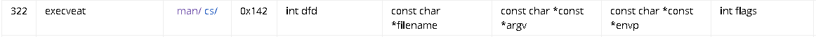 execveat system call이라는게 있었습니다. 두번째 인자로 명령어가 전달됩니다. 이제 나머지 인자들을 0으로 세팅하게 된다면 /bin/sh가 실행되면서 셸이 따이게 될겁니다.